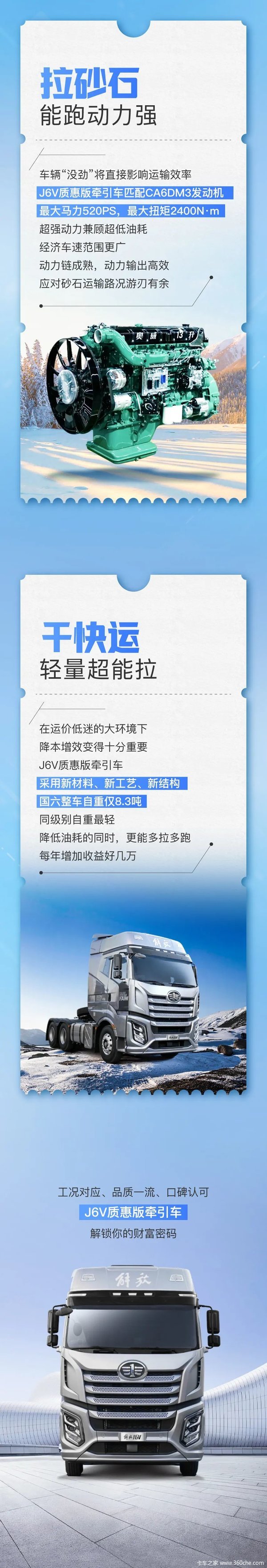 当前位置: 卡车之家 >卡车经销商 > 长沙一汽汽车 > 促销新闻 > 车型选得好,跑活没烦恼!解放J6V质惠版牵引,值得拥有!