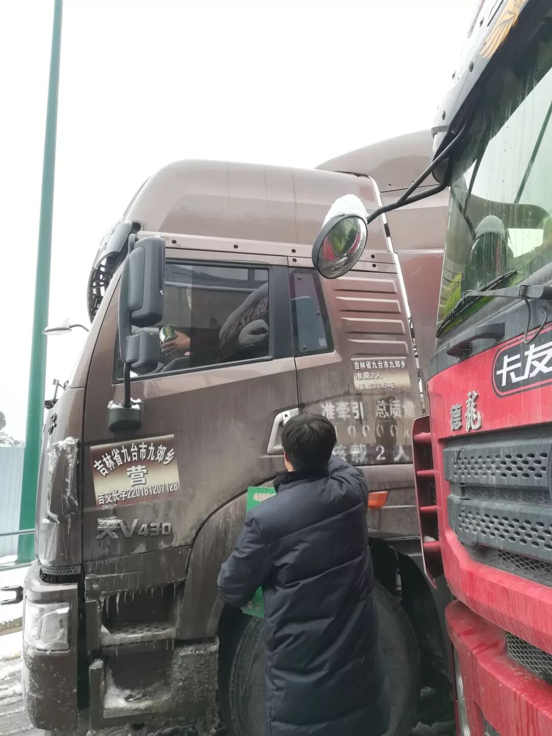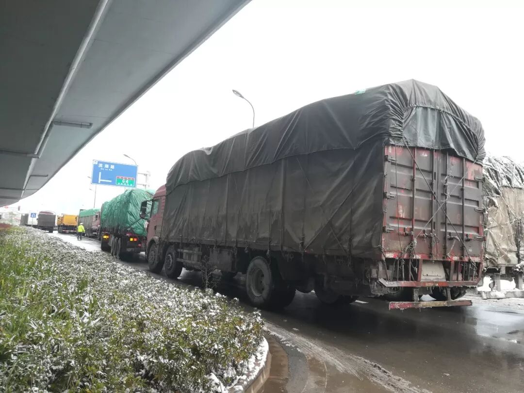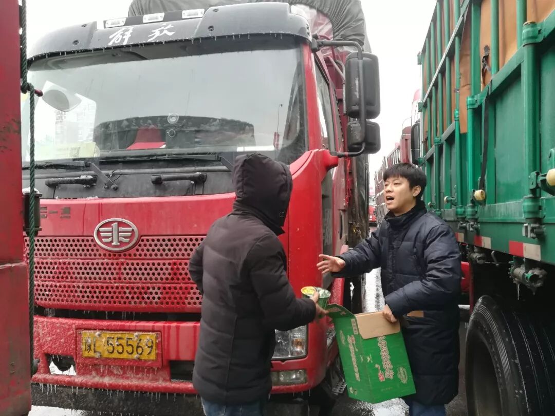 参加本次慰问活动的员工谢天说:“滞留的很多都是‘夫妻车’,丈夫跑货运妻子陪跑照顾饮食起居,辛苦了一年,只为过年回家和孩子父母吃上一顿热饭。我们送一些热水泡面也是希望卡友们堵车不堵心,为他们在这冰雪天里带来一些温暖。”