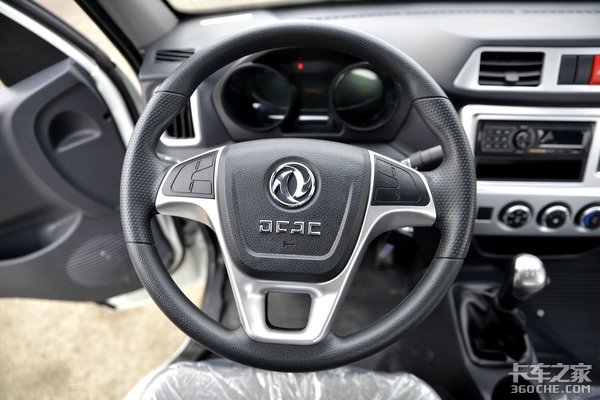 中控台上的功能区全部圈到一块银色的饰板内,与周边的黑色饰板形成了明显的对比,造型上采用左右对称、圆角边设计,整体看起来却是很整洁、舒适的。实拍该车配有电动窗、空调、收音机以及电子中控锁等配置,并提供大屏、导航等功能选装。