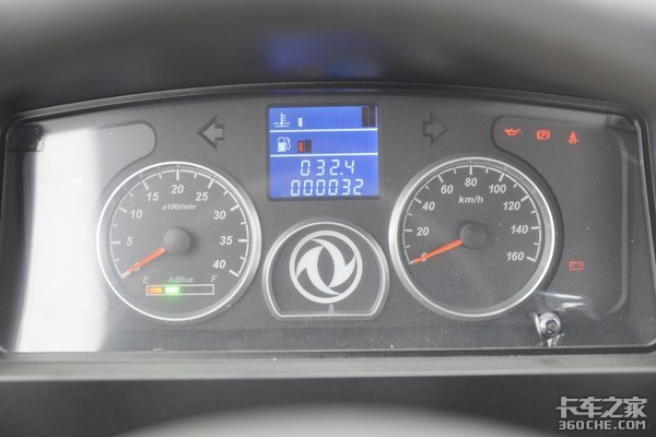 仪表盘采用黑底白字设计,中间设计有一个东风车标,增强品牌辨识度。车标上方配备有行车电脑,可以显示一些常见的油耗、里程等信息。