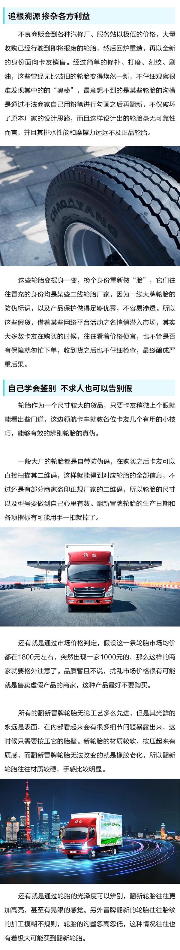 昨天是3.15国际消费者权益日,各个领域的消费者纷纷曝光自己消费领域的黑暗面,借着这个特殊的日子,领航卡车就带着大家来讨论下为什么部分卡友明明知道劣质轮胎对行车安全有着严重的影响,但是仍然还是会使用,那么劣质轮胎真的能省下使用成本吗?到底安全吗?