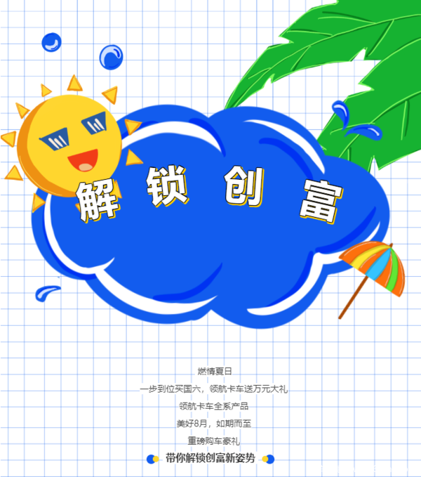 当前位置: 卡车之家 >卡车经销商 > 潍坊鸿业汽车销售服务(驭菱) > 促销新闻 > 国六卡车 就选领航丨美好8月,带你解锁创富新姿势