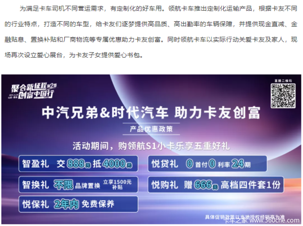 当前位置: 卡车之家 >卡车经销商 > 潍坊鸿业汽车销售服务(驭菱) > 促销新闻 > 聚合新征程,创富中国行,福田时代领航S1小卡助力卡友创富