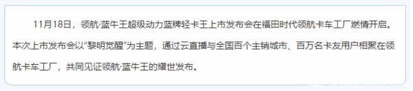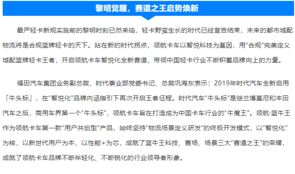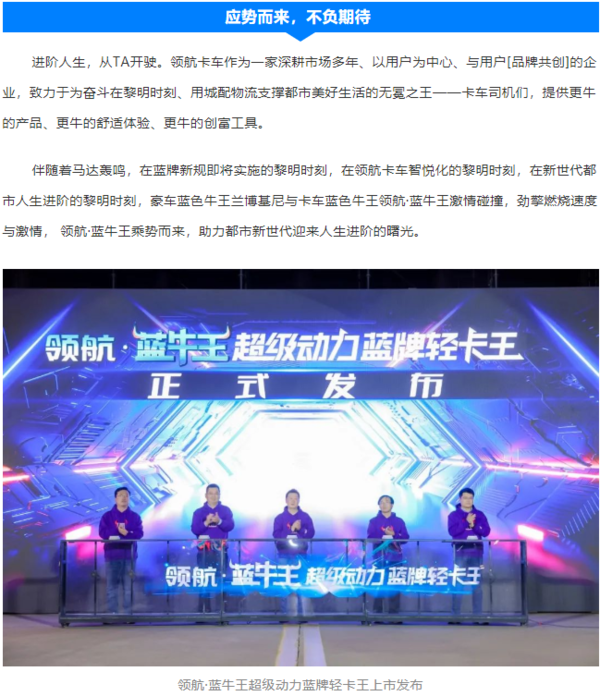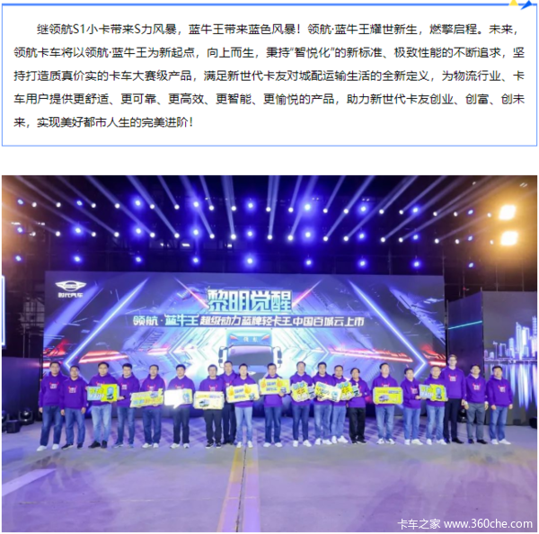 当前位置: 卡车之家 >卡车经销商 > 潍坊鸿业汽车销售服务(驭菱) > 促销新闻 > 黎明觉醒 领航·蓝牛王超级动力蓝牌轻卡王耀世发布
