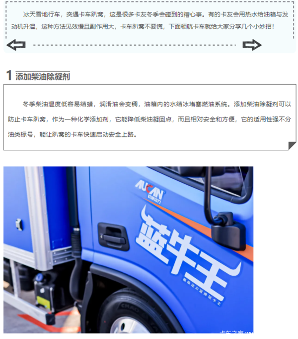 当前位置: 卡车之家 >卡车经销商 > 潍坊鸿业汽车销售服务(驭菱) > 促销新闻 > 车行百科|冬季卡车“趴窝”咋办,关键时刻这么做!