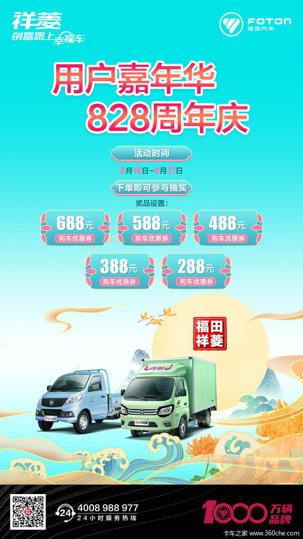 当前位置: 卡车之家 >卡车经销商 > 南阳福智汽车销售 > 促销新闻 > 福田祥菱用户嘉年华 828 周年庆!