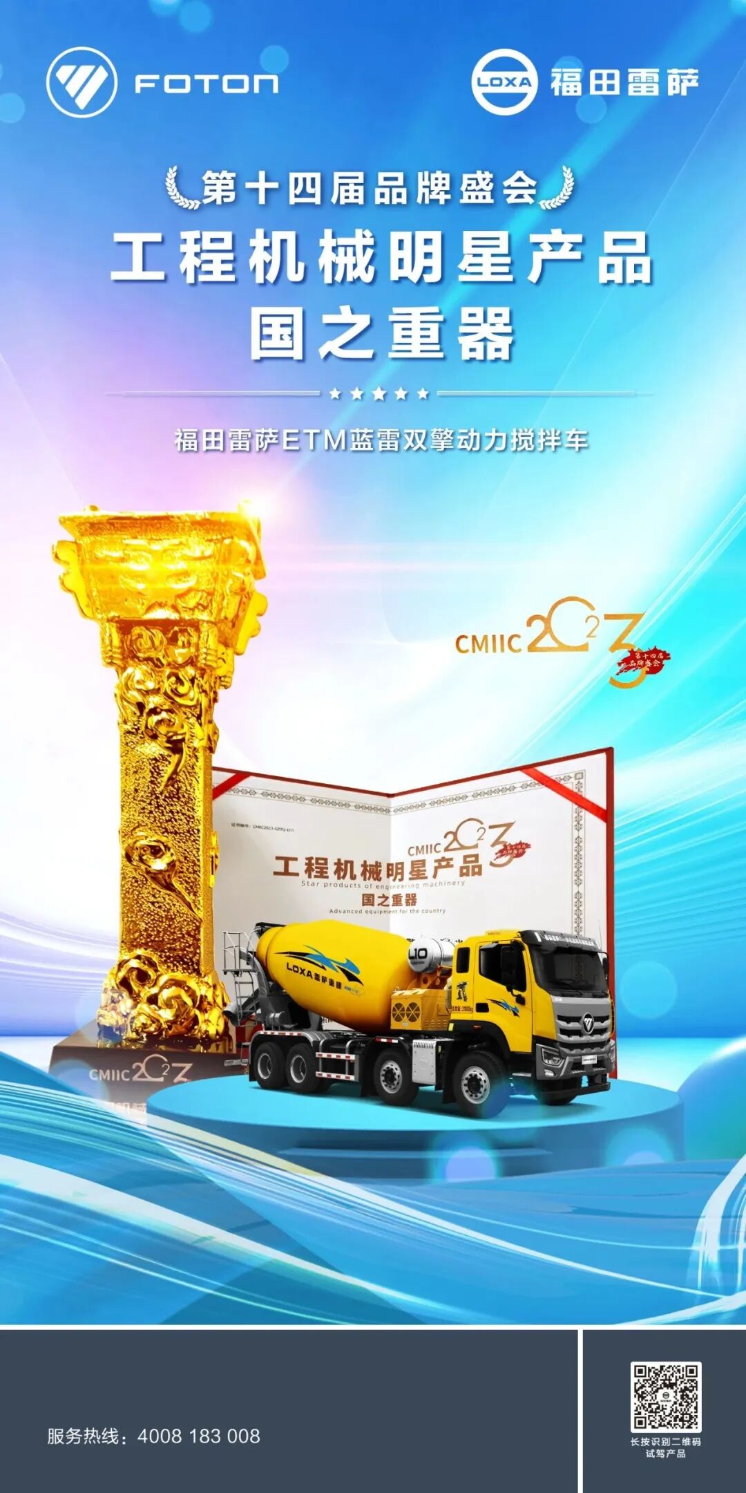 福田雷萨坚持以客户为中心,以技术创新为驱动,优秀的品质得到广泛认可。在颁奖典礼上,福田雷萨ETM蓝雷双擎动力搅拌车凭借强劲动力、可靠高效等优势,在激烈的同类产品竞争中脱颖而出,一举斩获“工程机械明星产品国之重器”荣誉称号。