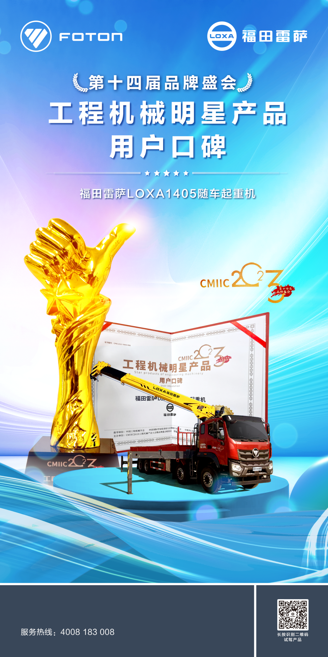 福田雷萨LOXA1405随车起重机凭借着良好的市场表现一举荣登工程机械明星产品之用户口碑榜单,再次验证了其超高的用户认可度,彰显中国智造力量。