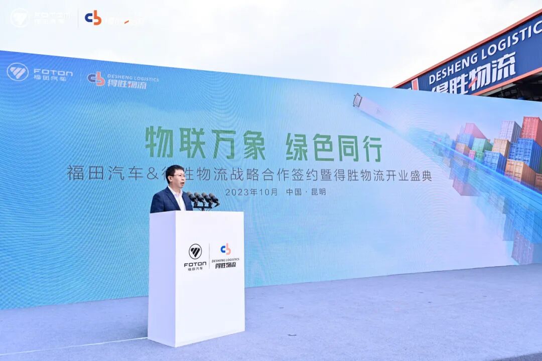 在各方见证下,昆明市政府、福田汽车以及得胜物流共同成立了“西南区域绿色物流保障联盟”,旨在实现物流运输的低碳化和智能化,聚焦云南地区绿色物流细分领域,打造全应用场景的绿色低碳运输工具,带给用户智能绿色的末端物流运输体验。