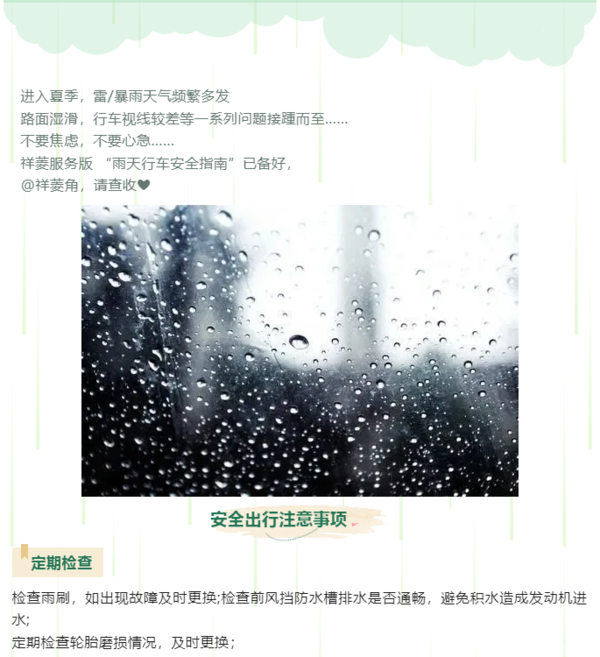 当前位置: 卡车之家 >卡车经销商 > 南阳福智汽车销售 > 促销新闻 > 菱心守护|降雨频繁,行车安全指南 @祥菱角 请查收