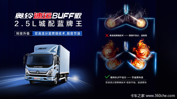 极致的节油能力是奥铃速运BUFF版的核心优势之一,这款车采用世界领先的双涡流分层燃烧技术,该技术保证发动机每一滴油都快速燃烧、燃烧干净,没有残留,一滴油分成两瓣花的黑科技,使得奥铃速运BUFF版燃油效率大幅提升。同时配备的原厂货厢,在满足蓝牌新规限值和安全标准的双重前提下,把装载容量做到了极限,轻量化优势更加明显,并与优化的导流罩相得益彰,进一步降低高速行驶风阻,从而大幅降低油耗。