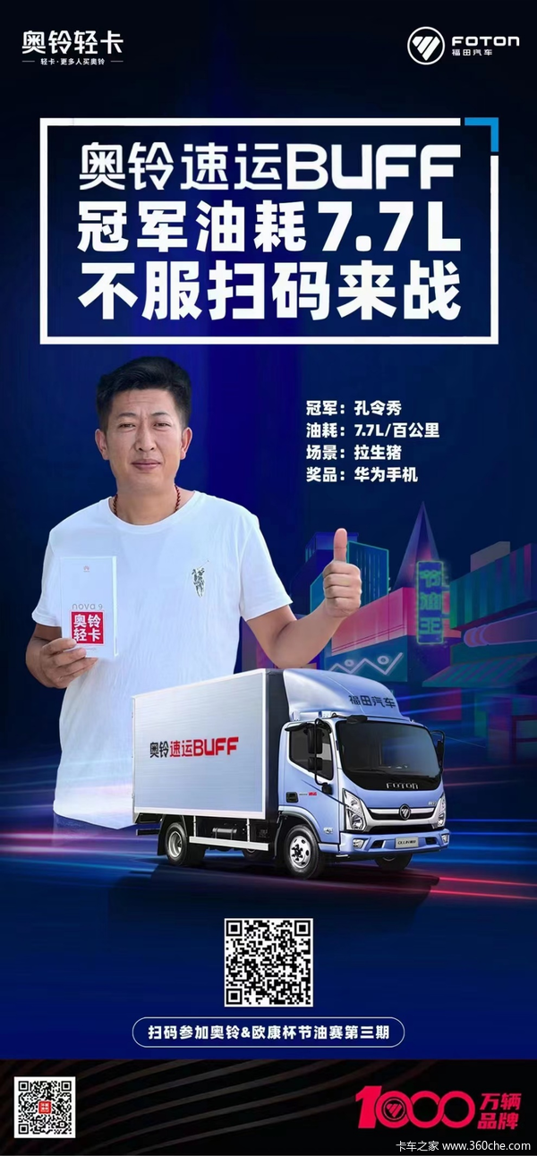 在今年举办的奥铃&欧康杯2022线上节油挑战赛中,山东临沂的奥铃速运BUFF卡友孔师傅,以百公里7.7L的超低油耗,创造了该款车物流配送油耗的最低水平。正如孔师傅所说,“节油技巧只是锦上添花,奥铃速运BUFF版本身的极致节油能力才是根本。开一年省出的油钱都够保养了,最少能开个10年,这得省下多少钱!”孔师傅是临沂沂南县第一个买国六车的人,在他的带动下,不少同行也陆续购入了奥铃速运BUFF版。