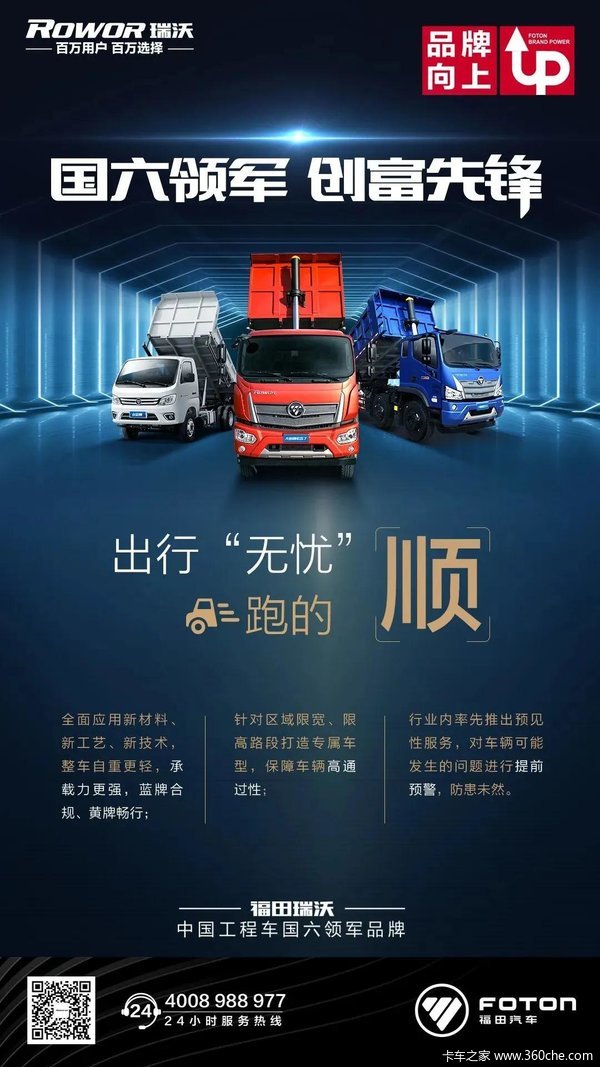 为积极响应国家政策号召,助力打赢蓝天保卫战,福田瑞沃工程车提前布局,加大研发力度、不断优化核心技术,率先投放产品性能稳居行业领先水平的国六款工程车,以先进的技术优势成为国六新时代的“领跑者”。