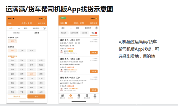 当前位置: 卡车之家 >卡车经销商 > 广州骏晟汽车销售 > 促销新闻 > 运满满/货车帮司机版App找货示意图