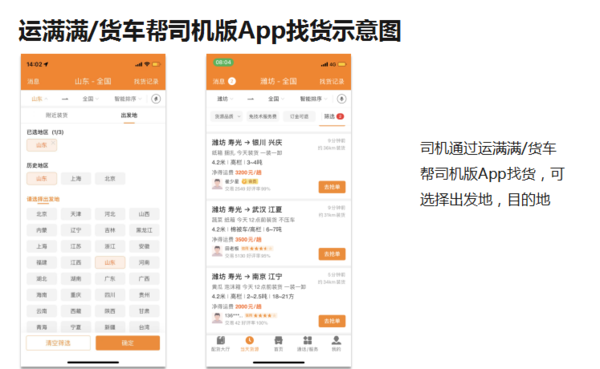 当前位置: 卡车之家 >卡车经销商 > 广州骏晟汽车销售 > 促销新闻 > 运满满/货车帮司机版App找货示意图