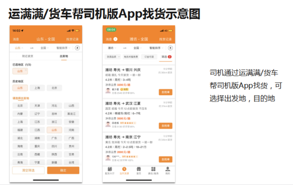 当前位置: 卡车之家 >卡车经销商 > 广州骏晟汽车销售 > 促销新闻 > 运满满/货车帮司机版App找货示意图