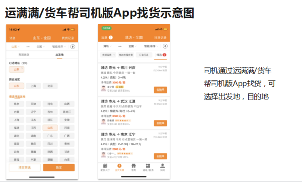当前位置: 卡车之家 >卡车经销商 > 广州骏晟汽车销售 > 促销新闻 > 运满满/货车帮司机版App找货示意图