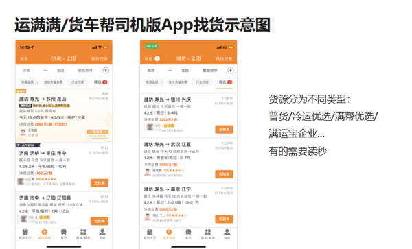 当前位置: 卡车之家 >卡车经销商 > 广州骏晟汽车销售 > 促销新闻 > 运满满/货车帮司机版App找货示意图