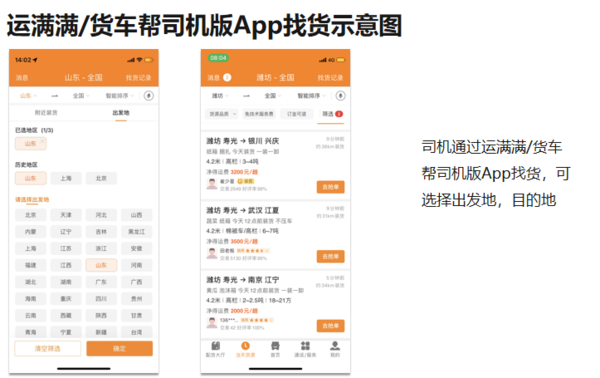 当前位置: 卡车之家 >卡车经销商 > 广州骏晟汽车销售 > 促销新闻 > 运满满/货车帮司机版App找货示意图