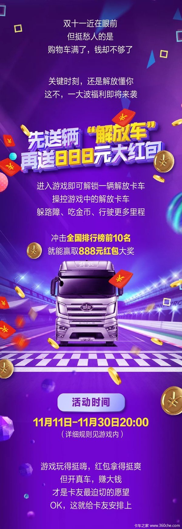 当前位置: 卡车之家 >卡车经销商 > 佛山市南海一汽汽车销售服务 > 促销新闻 > 双十一福利预告丨赢888元游戏红包,享8000元购车优惠!