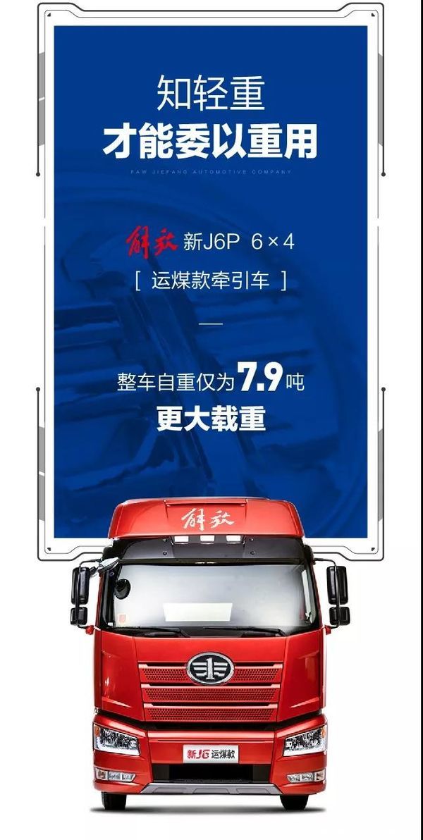此次,新J6P 6×4 运煤款牵引车借新J6荣耀版上市惊艳亮相,更有长换油周期和低自重设计加持,低维保成本带来了良好的经济适用性,这样一款车,“煤”道理不喜欢吧!