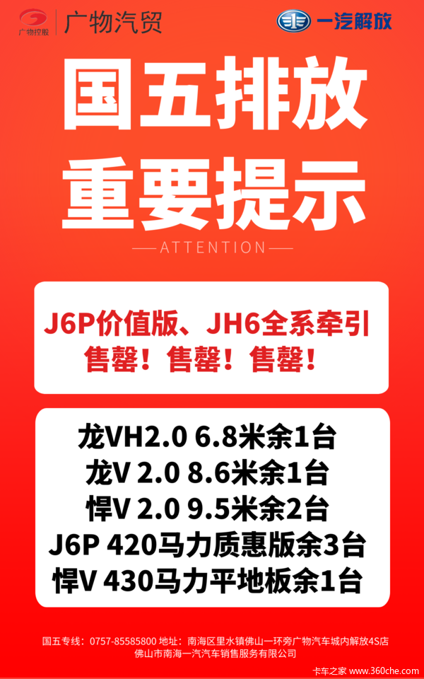 当前位置: 卡车之家 >卡车经销商 > 佛山市南海一汽汽车销售服务 > 促销新闻 > 国五排放 重要提示 多款热卖车已售罄