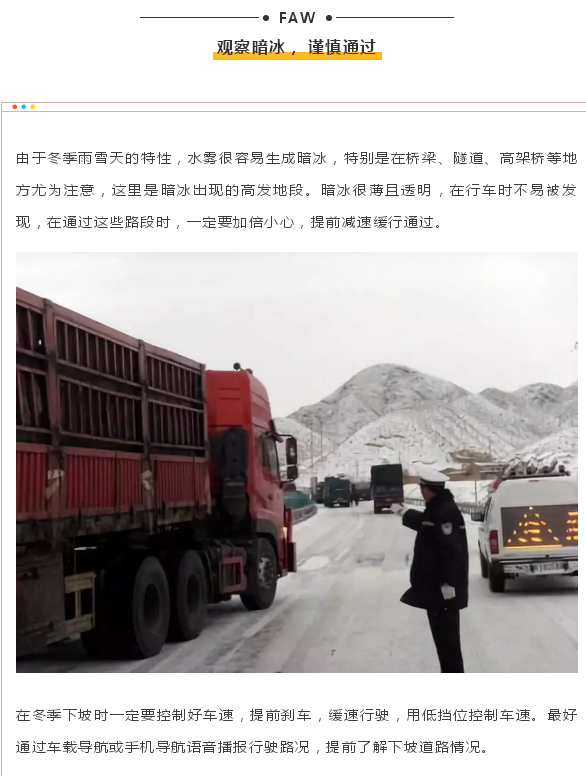 当前位置: 卡车之家 >卡车经销商 > 佛山市南海一汽汽车销售服务 > 促销新闻 > 冬季开车有点“滑”,冰雪路面不要慌!