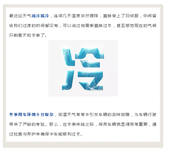 当前位置: 卡车之家 >卡车经销商 > 佛山市南海一汽汽车销售服务 > 促销新闻 > 冬天不这样养车,那你就真凉凉了!