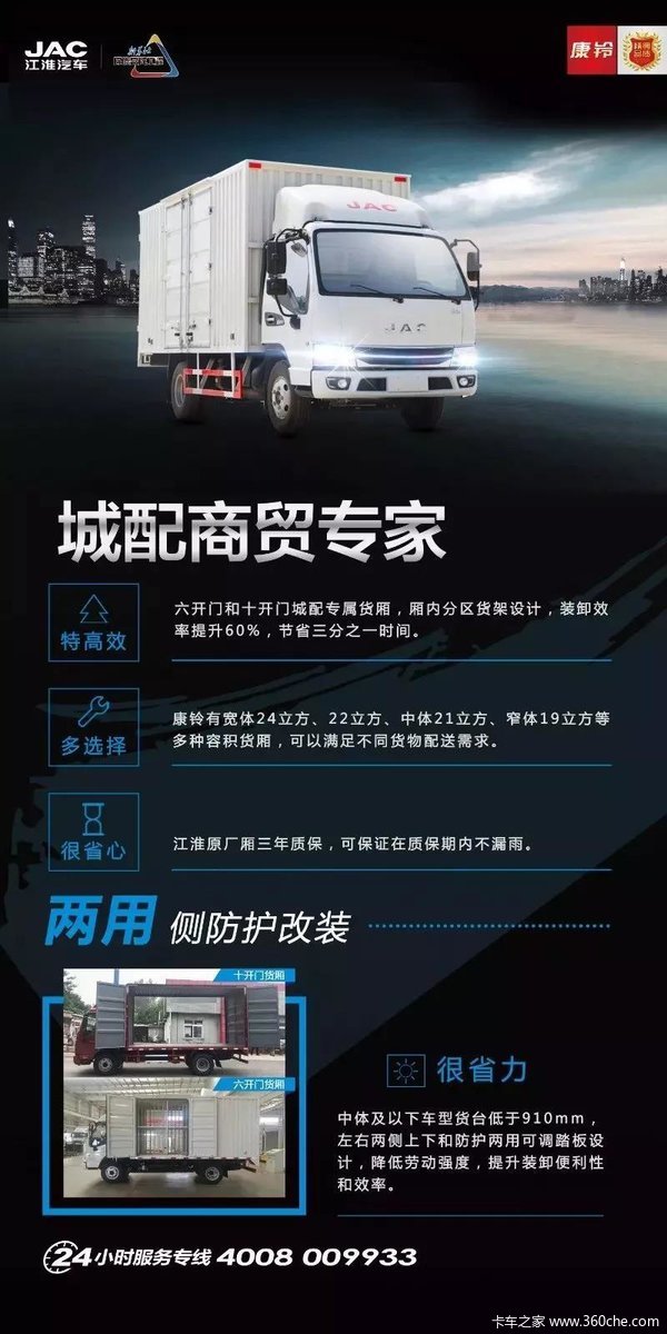 很省心:江淮原厂厢三年质保,可保证在质保期内不漏雨。