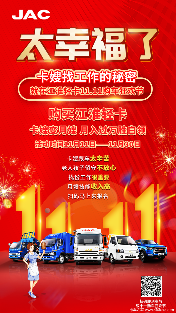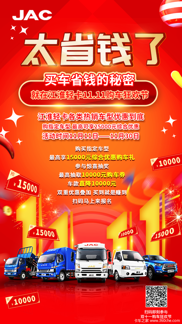 压根不需要返场,江淮轻卡11.11购车狂欢节多重豪礼送到月底