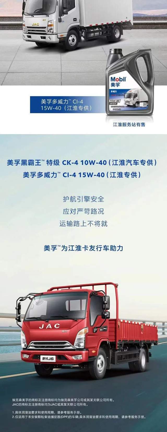 当前位置: 卡车之家 >卡车经销商 > 合肥市顺意汽车 > 促销新闻 > 江淮1卡联合美孚推出国六美孚黑霸王润滑油 专供江淮守护行车安全