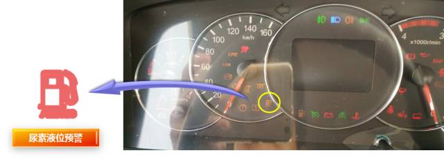 1、尿素液位低于15%时,尿素液位预警指示灯会亮,请及时添加尿素溶液;
