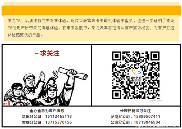当前位置: 卡车之家 >卡车经销商 > 深圳市车之彩汽车销售服务 > 促销新闻 > 品质决定体验,乘龙T5获“雷锋卡车司机体验车型”称号!