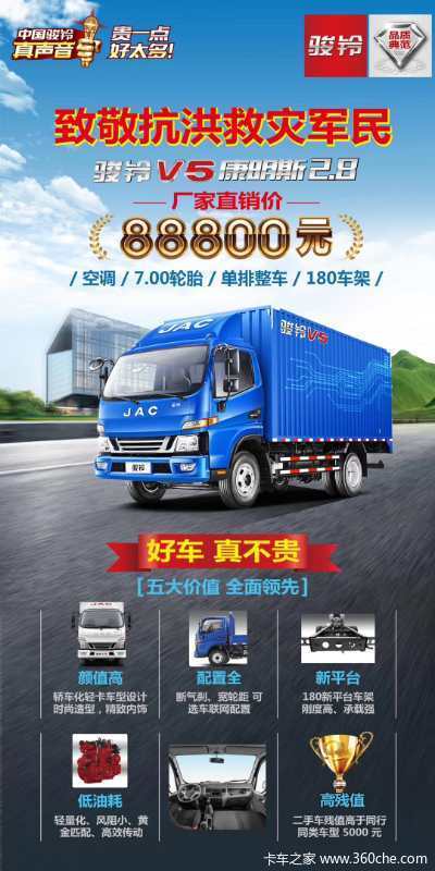 当前位置: 卡车之家 >卡车经销商 > 湖北江淮汽车销售服务有限责任公司 > 促销新闻 > 致敬抗洪救灾军民 骏铃V5康明斯2.8