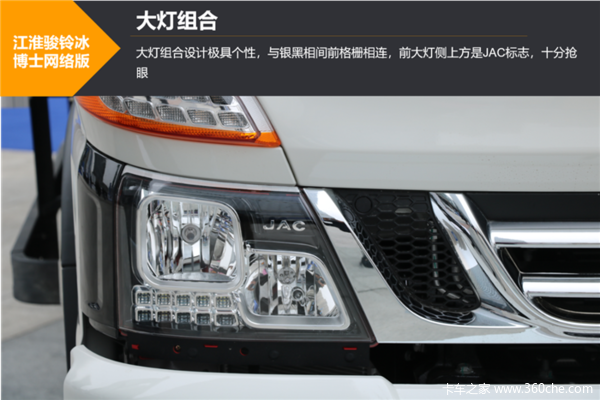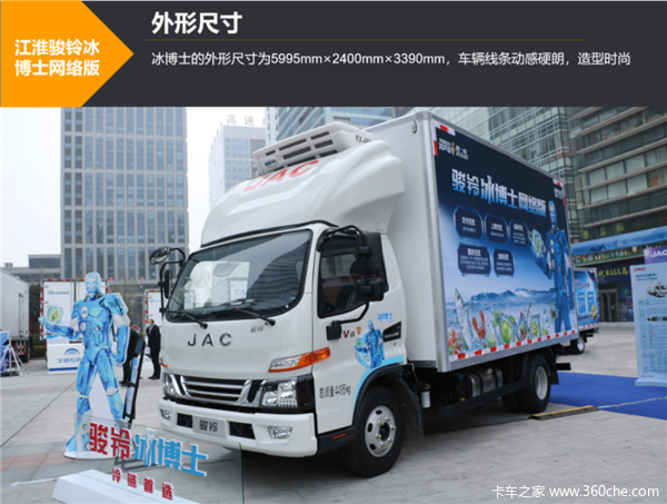 江淮骏铃冰博士网络版的车身尺寸为5995mm×2400mm×3390mm,车辆线条动感硬朗,造型时尚。“冰博士”的前脸呈现出牛头造型,给人以稳健的感觉,更有视觉冲击性。新车的A柱角度进行了优化,在保证空间的同时还兼顾了车辆流线造型,减小风阻,节省油耗。