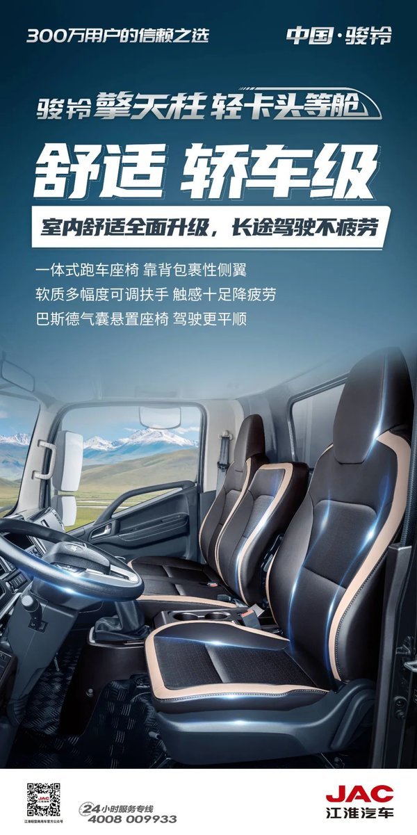 当前位置: 卡车之家 >卡车经销商 > 湖北江淮汽车销售服务有限责任公司 > 促销新闻 > 骏铃擎天柱,轻卡头等舱,轿车级舒适,长途不疲劳