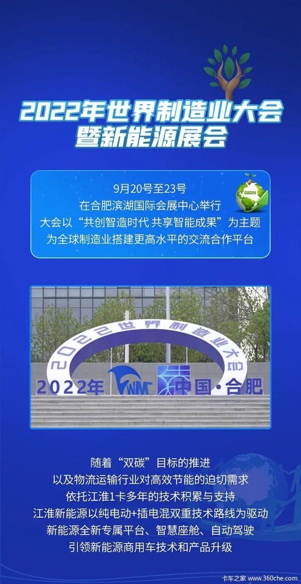 当前位置: 卡车之家 >卡车经销商 > 湖北江淮汽车销售服务有限责任公司 > 促销新闻 > 2022世界制造业大会 江淮1卡低碳+智能引领新能源变革