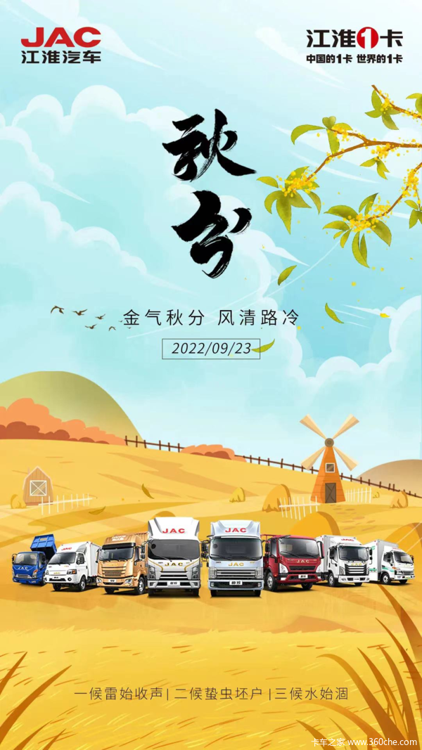 当前位置: 卡车之家 >卡车经销商 > 湖北江淮汽车销售服务有限责任公司 > 促销新闻 > 湖北江淮 秋分 | 金气秋分 风清路冷