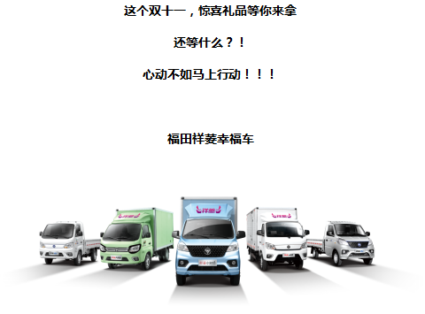 当前位置: 卡车之家 >卡车经销商 > 河北翰辉汽车 > 促销新闻 > 【 双十一 】祥菱双十一活动再送惊喜!