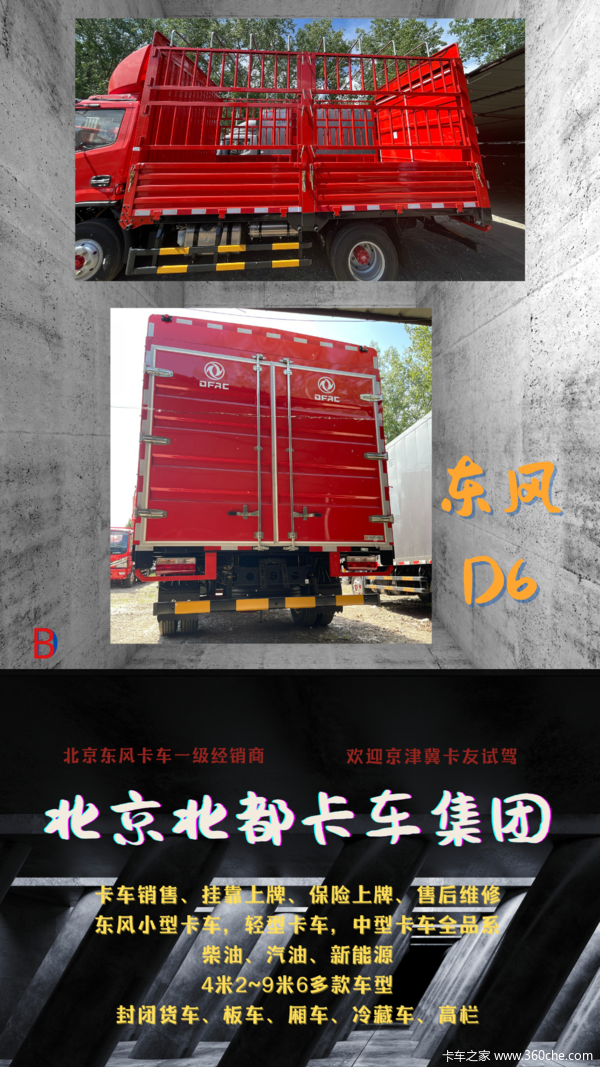 Hello,京津冀的卡友大家好,今天为您介绍一辆非常优秀的轻卡,那就是东风D6重载版 ,目前这款车店内有现货,并且可以为卡友提供购车分期,保险上京牌,蓝牌~