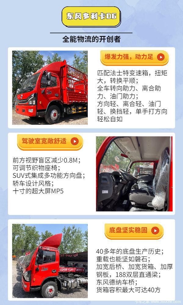 东风多利卡标配全柴/玉柴两种动力,爆发力强,动力足,中小功率领先者,力大无比,经济适用,性价比高~