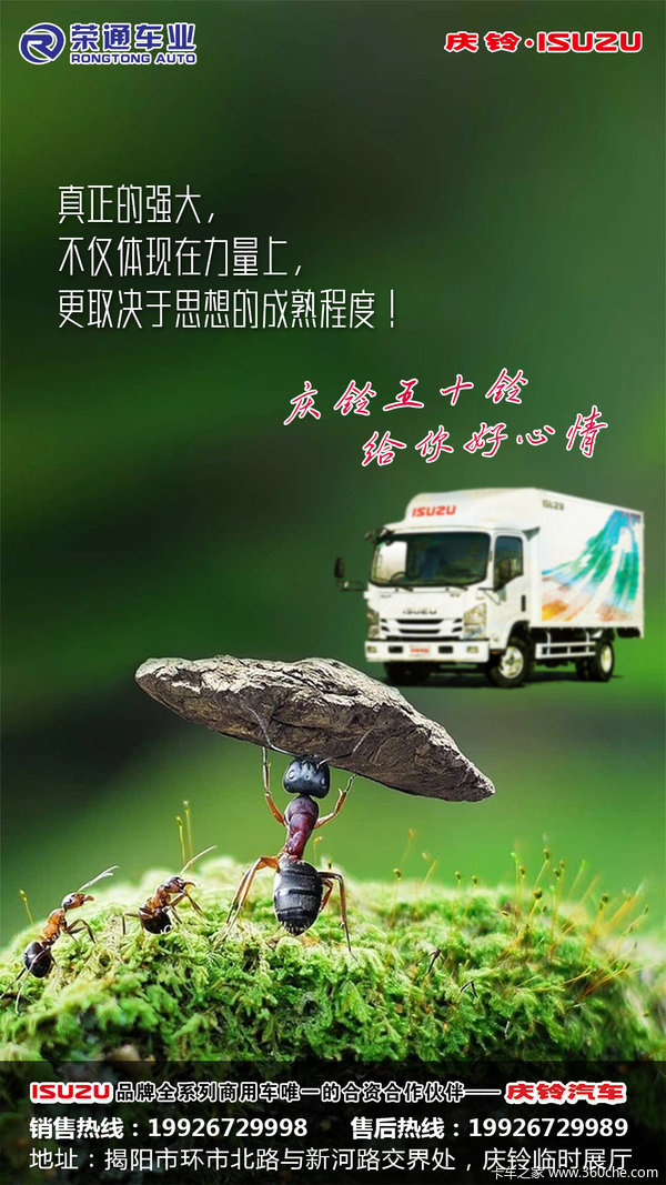 当前位置: 卡车之家 >卡车经销商 > 庆铃五十铃荣通4S店 > 促销新闻 > 荣通庆铃五十铃,强大就是青山绿水任我遨游