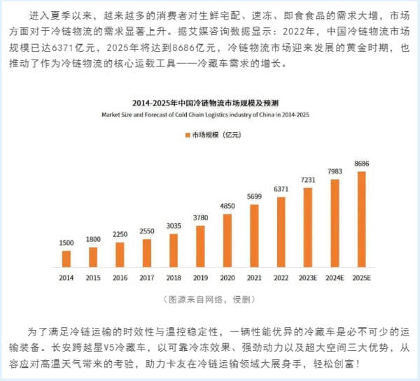 高温炙烤下,冷藏车作为冷链运输的关键一环,其制冷效果与温控能力直接影响着货物品质。长安跨越星V5冷藏车,最低制冷温度可达零下18℃,并支持温度调节,适用于生鲜、速冻、医药等不同货物的储存环境,降低损耗率,打赢新鲜保卫战。与此同时,车厢制冷系统采用高效、环保的R404a制冷剂,减少环境危害的同时,更有力保障食品安全,满足不同运输场景需求,无惧高温,助力卡友把握更多创富机遇!