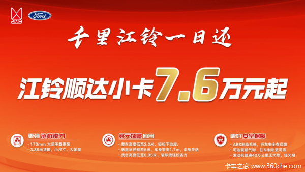 如果你手里资金有限,追求性价比,想买辆小卡多用几年的话,《卡车之友网》记者建议一定要买辆大品牌的小卡。正好国内商用车一线品牌江铃前不久推出了一款助力千行万业实现致富目标的小卡——顺达小卡致富版。