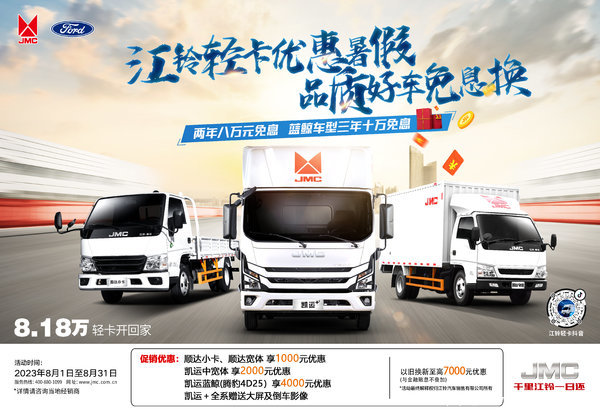 活动时间:2023年8月1日至8月31日,服务热线:400-880-1099 网址:www.jmc.com.cn