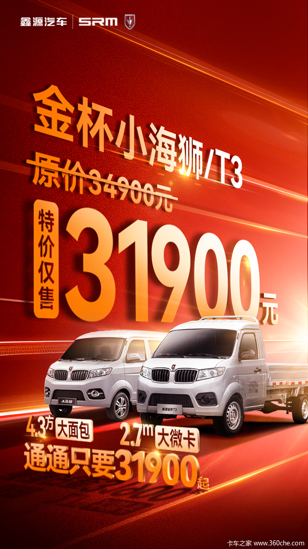 【特价钜惠】金杯大面包、大微卡仅售31900元起
