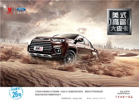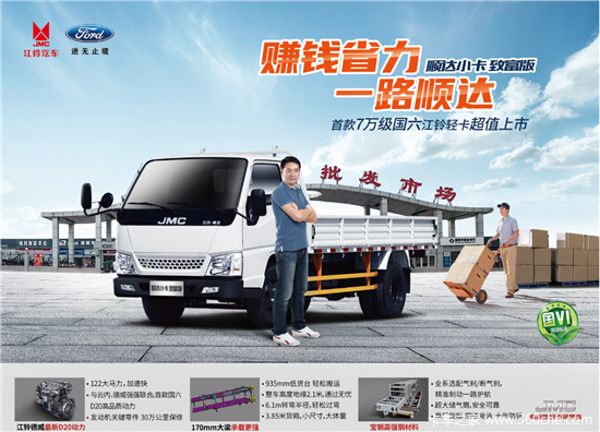 公司构建了遍布全国的强大营销网络,公司拥有三大品牌,福特品牌、JMC品牌以及驭胜品牌。福特 “新世代全顺”、JMC轻卡“凯运”、“凯锐”、“顺达”、JMC皮卡“宝典”、“域虎”等,这些产品已成为节能、实用、环保汽车的典范。江铃近几年来投入巨资充实原有的产品线,福特“撼路者”、福特“途睿欧”、“新全顺”物流车、全新驭胜S350、驭胜S330等新品陆续重磅上市,江铃重卡新品磅礴而出。