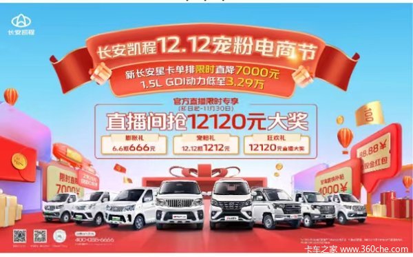 长安凯程12.12钜惠提前享,抢12120元直播大奖