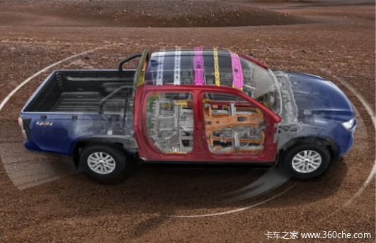 底盘方面,全新一代铃拓采用了第七代D-MAX悍盾底盘,国内领先的三段式车架加上八横两纵的结构,可以实现前部安全碰撞核心区域车架截面积增大46.5%,扭转刚度提升13%,弯曲刚度提升30%,充分满足C-NCAP五星碰撞要求。
