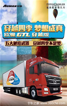 欧曼GTL穿越版是根据中国北方地区冬季气候寒冷的特殊工况、结合广大用户的需求,为寒冷地区量身打造,具有更舒适、更省钱、更可靠、更适应的特点,真正满足北方寒冷区域的一款大动力、高效率高端重卡。廉师傅当初之选择欧曼GTL穿越版就是因为它专门为寒冷地区量身打造的特点。